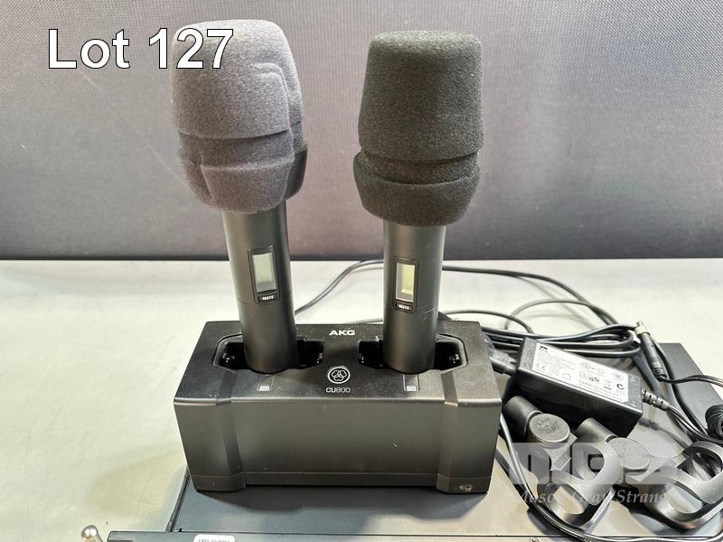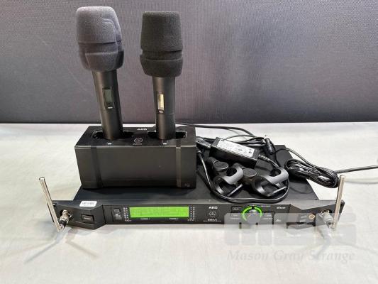 AKG DSR800 DIGITAL WIRELESS STATIONARY RECEIVER WITH 2 x AKG DHT800 HANDHELD MICROPHONES, 1 x AKG CU800 CHARGING UNIT & 1 x POWER SUPPLY S/N:V151001422