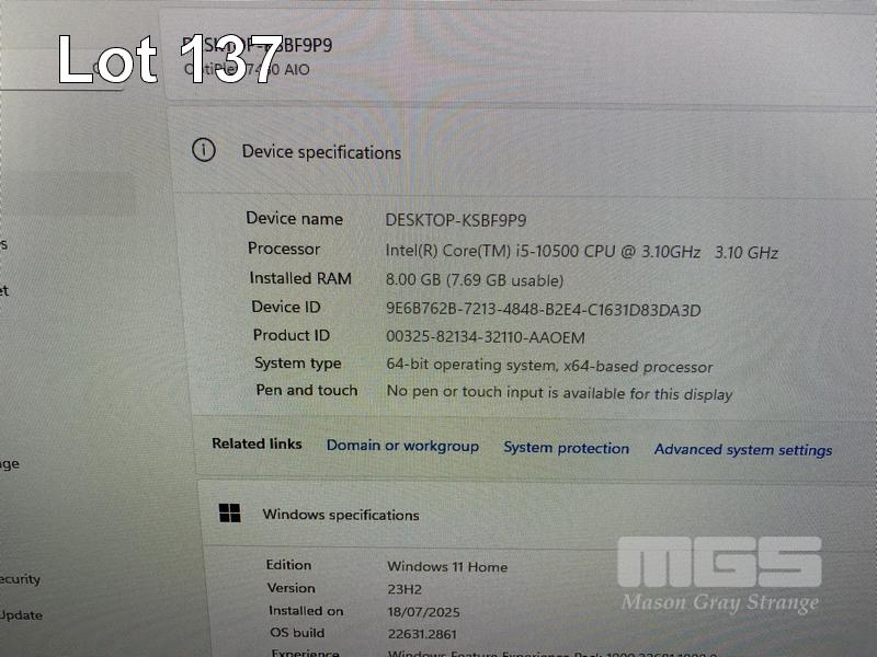 ALL-IN-ONE PC, DELL OPTIPLEX 7480, CORE i5 10500 (10TH GEN) @ 3.1GHz, 8GB DDR4 RAM, 512GB NVMe M.2 SSD, INBUILT 23.8" FHD WIDESCREEN (1920x1080), INTEL HD VIDEO, WEBCAM, 5 x USB, 1 x USB-C, Wi-Fi, BLUETOOTH, WINDOWS 11 HOME INSTALLED, KEYBOARD & MOUSE S/N:9JMWVD3