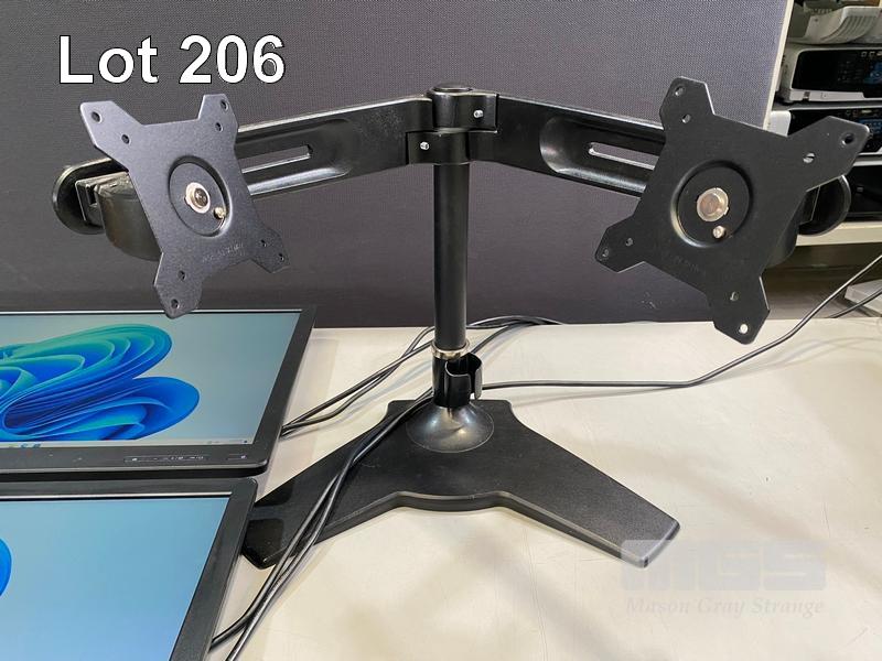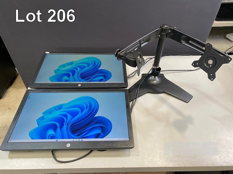 2 x MONITORS, HP PRODISPLAY P240va 23.8" LED-BL LCD WIDESCREEN, HDMI, DISPLAYPORT, VGA (WITH CABLES) (NO HDMI CABLE) WITH FREESTANDING DUAL MONITOR STAND S/N:CNK8272B1P, CNK825155N