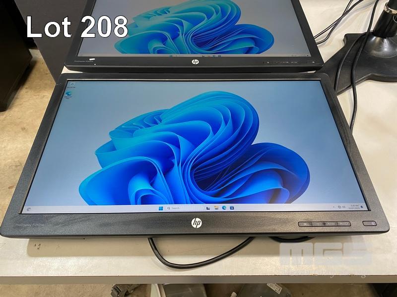 2 x MONITORS, HP PRODISPLAY P240va 23.8" LED-BL LCD WIDESCREEN, HDMI, DISPLAYPORT, VGA (WITH CABLES) (NO HDMI CABLE) WITH FREESTANDING DUAL MONITOR STAND S/N:CNK82729N2, CNK82729NM