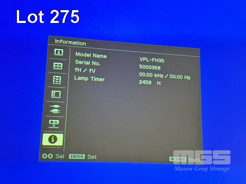 PROJECTOR, SONY VPL-FH35 WUXGA 3LCD, 5,200 LUMENS, 2,458 HOURS SHOWING (NO REMOTE) S/N:5000368