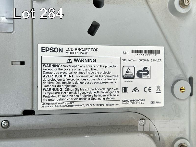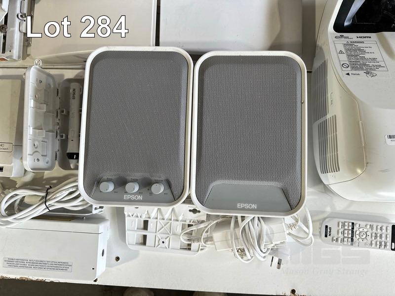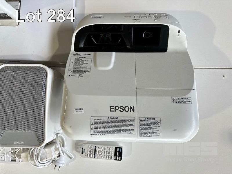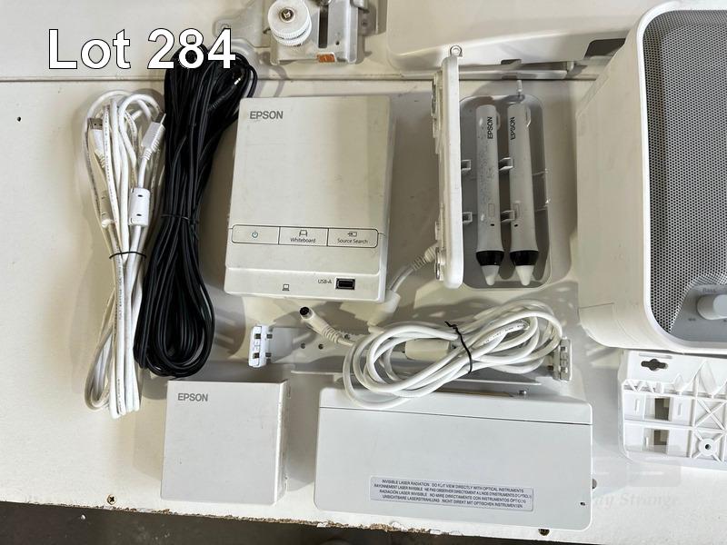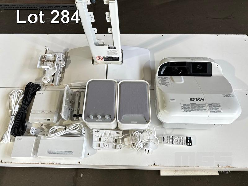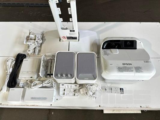 PROJECTOR, EPSON EB-595Wi ULTRA SHORT THROW, 3300 LUMENS, 778 NORMAL HOURS & 23 ECO HOURS SHOWING & REMOTE WITH BRACKET, ELPSP02 SPEAKERS, CONTROL BOX, H599LCU TOUCH UNIT & INTERACTIVE PENS S/N:UHPK6300110
