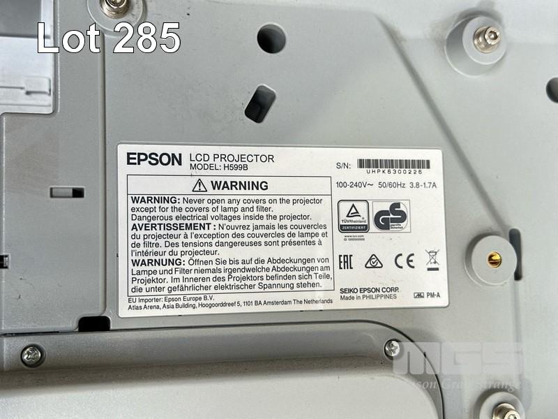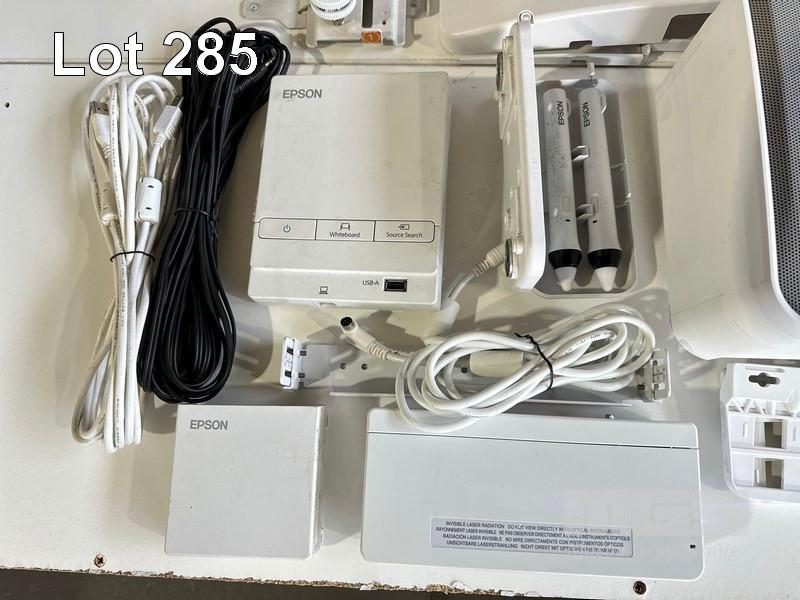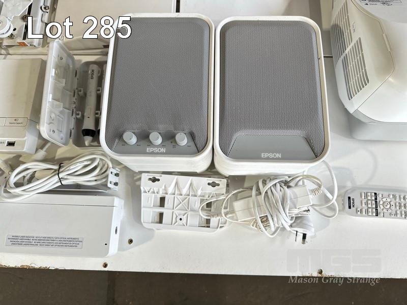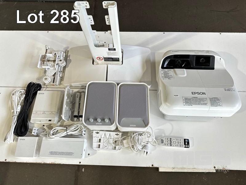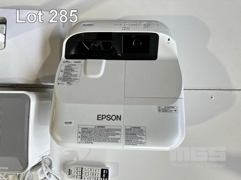PROJECTOR, EPSON EB-595Wi ULTRA SHORT THROW, 3300 LUMENS, 967 NORMAL HOURS & 19 ECO HOURS SHOWING & REMOTE WITH BRACKET, ELPSP02 SPEAKERS, CONTROL BOX, H599LCU TOUCH UNIT & INTERACTIVE PENS S/N:UHPK6300226