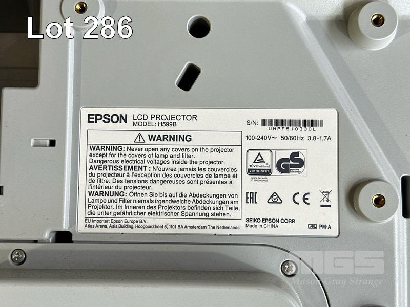 PROJECTOR, EPSON EB-595Wi ULTRA SHORT THROW, 3300 LUMENS, 1,557 NORMAL HOURS & 51 ECO HOURS SHOWING & REMOTE WITH BRACKET, CONTROL BOX, H599LCU TOUCH UNIT & INTERACTIVE PENS S/N:UHPF510330L