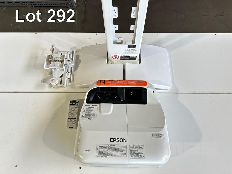 PROJECTOR, EPSON EB-595Wie ULTRA SHORT THROW, 3300 LUMENS, 629 NORMAL HOURS SHOWING & REMOTE WITH BRACKET S/N:UHQF4X0311L