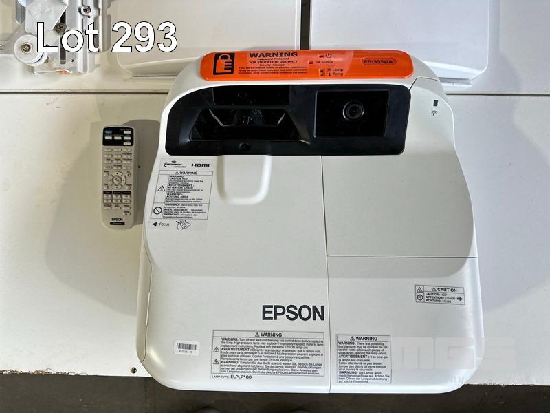 PROJECTOR, EPSON EB-595Wie ULTRA SHORT THROW, 3300 LUMENS, 1,061 NORMAL HOURS & 24 ECO HOURS SHOWING & REMOTE WITH BRACKET S/N:UHQF4X0310L