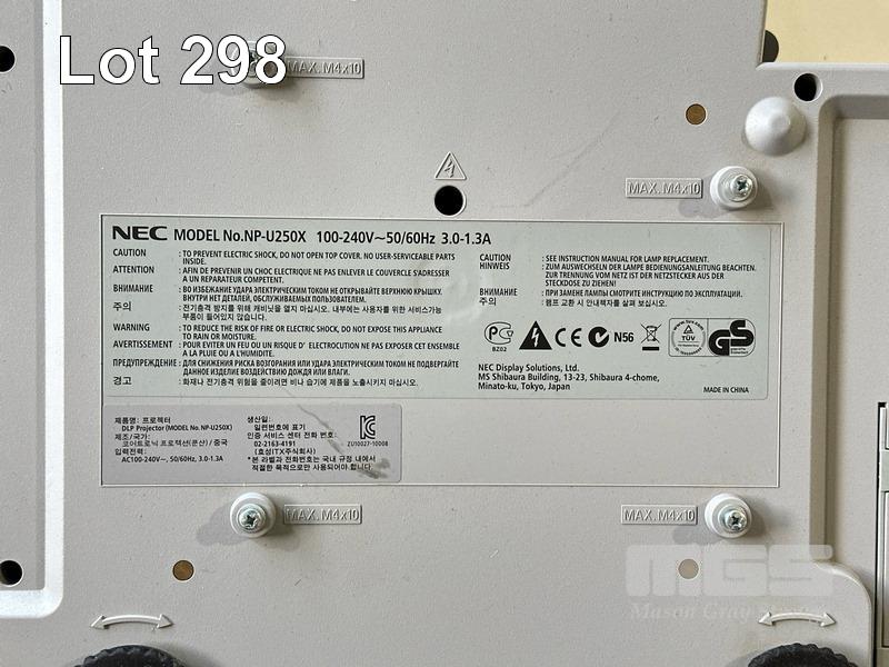 PROJECTOR, NEC NP-U250XG ULTRA SHORT THROW, 2500 LUMENS, 684 NORMAL HOURS & 565 ECO HOURS SHOWING (NO REMOTE) S/N:1640549CD