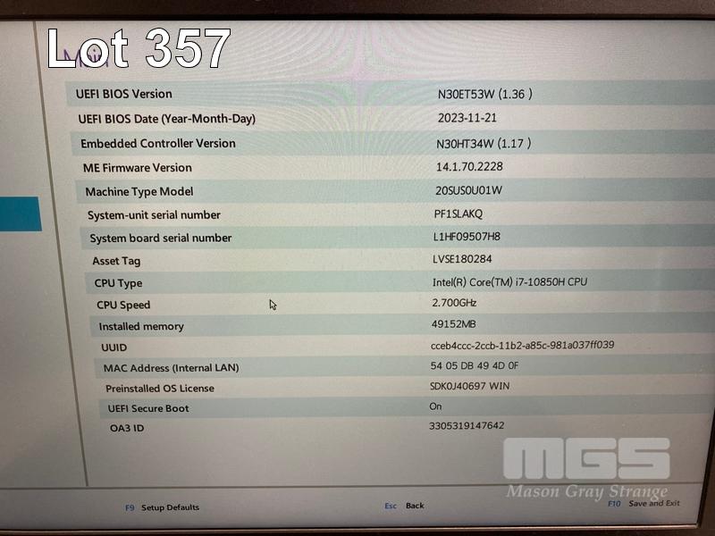 LAPTOP, LENOVO THINKPAD P15 GEN 1 MOBILE WORKSTATION, TYPE 20SU, CORE i7 10850H (10TH GEN) @ 2.7GHz, 48GB DDR4 RAM, 2 x 512GB NVMe M.2 SSD, 15.6" WIDESCREEN (1920x1080), 4GB NVIDIA QUADRO T2000 VIDEO, Wi-Fi, BLUETOOTH, WINDOWS 11 PRO INSTALLED & POWER SUPPLY (NOTE: MINOR MARKS & SPOTS ON SCREEN) S/N:PF1SLAKQ