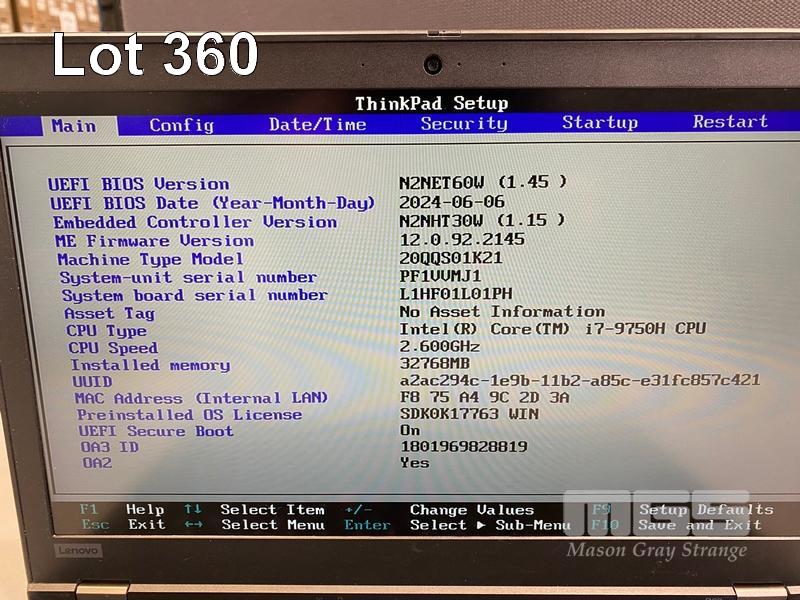 LAPTOP, LENOVO THINKPAD P53 MOBILE WORKSTATION, TYPE 20QQ, CORE i7 9750H (9TH GEN) @ 2.6GHz, 32GB DDR4 RAM, 512GB NVMe M.2 SSD, 1TB NVMe M.2 SSD, 15.6" WIDESCREEN (1920x1080), 4GB NVIDIA QUADRO T2000 VIDEO, Wi-Fi, BLUETOOTH, WINDOWS 11 PRO INSTALLED & POWER SUPPLY (NOTE: CASING WORN LHS) S/N:PF1VVMJ1