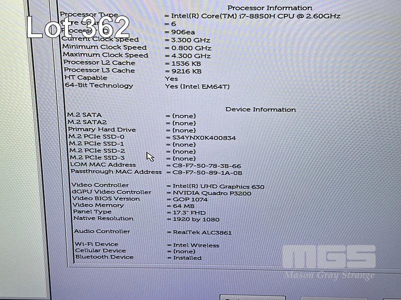 LAPTOP, DELL PRECISION 7730, CORE i7 8850H (8TH GEN) @ 2.6GHz, 32GB DDR4 RM, 512GB NVMe M.2 SSD, 17.3" WIDESCREEN (1920x1080), 6GB NVIDIA QUADRO P3200 VIDEO, Wi-Fi, BLUETOOTH, WINDOWS 11 PRO INSTALLED & POWER SUPPLY S/N:3VSP7S2