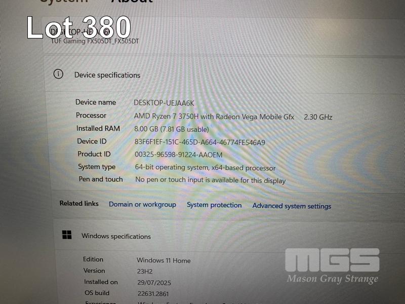 LAPTOP, ASUS TUF GAMING FX505DT, AMD RYZEN 7 3750H WITH RADEON VEGA MOBILE GFX @ 2.3GHz, 8GB DDR4 RAM, 512GB NVMe M.2 SSD, 15.6" WIDESCREEN (1920x1080), Wi-Fi, BLUETOOTH, WINDOWS 11 HOME INSTALLED & POWER SUPPLY S/N:K9NRCV051063383