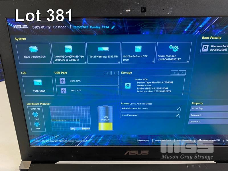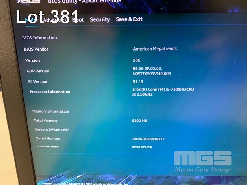 LAPTOP, ASUS FX503VM GAMING, CORE i5 7300HQ (7TH GEN) @ 2.5GHz, 8GB DDR4 RAM, 256GB M.2 SSD, 15.6" WIDESCREEN (1920x1080), 3GB NVIDIA GEFORCE GTX 1060 VIDEO, Wi-Fi, BLUETOOTH, WINDOWS 10 HOME INSTALLED & POWER SUPPLY S/N:J3NRCX016896117