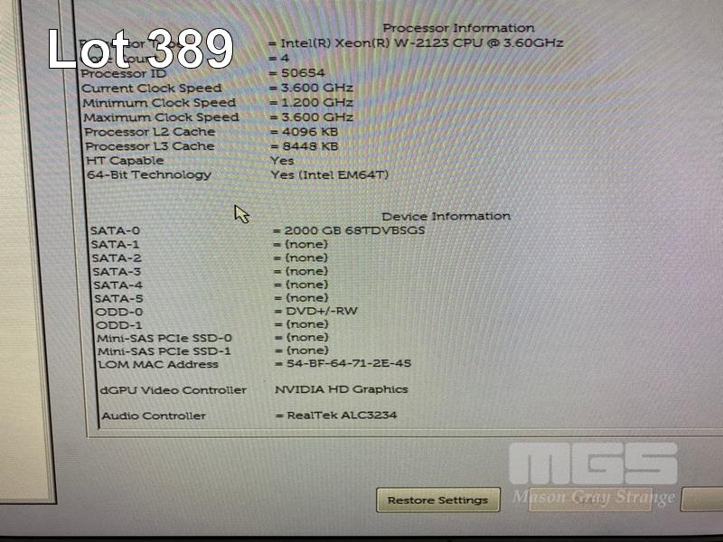 MIDI-TOWER PC, DELL PRECISION 5820 WORKSTATION, XEON W-2123 @ 3.6GHz, 16GB DDR4 RAM, 512GB NVMe M.2 SSD, 2TB SATA HDD, DVD-RW, 8GB NVIDIA GEFORCE GTX 1080 VIDEO, WINDOWS 10 PRO INSTALLED (NO KEYBOARD, NO MOUSE S/N:70319R2