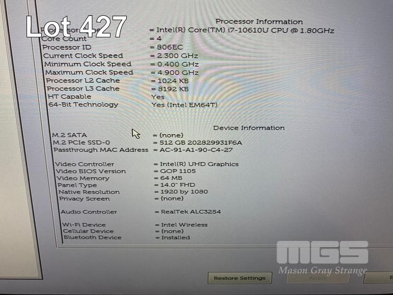 LAPTOP, DELL LATITUDE 7410, CORE i7 10610U (10TH GEN) @ 1.8GHz, 32GB DDR4 RAM, 512GB NVMe M.2 SSD, 14" WIDESCREEN (1920x1080), INTEL UHD GRAPHICS, Wi-Fi, BLUETOOTH, WINDOWS 11 PRO INSTALLED (NO USB-C POWER SUPPLY) (NOTE: SOME KEYBOARD KEYS WORN) S/N:DFQKL63