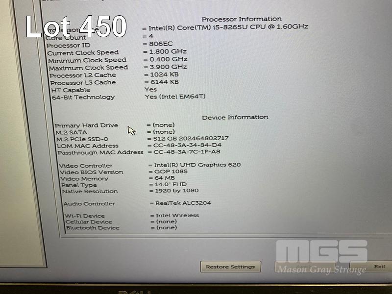 LAPTOP, DELL LATITUDE 5400, CORE i5 8265U (8TH GEN) @ 1.6GHz, 8GB DDR4 RAM, 512GB NVMe M.2 SSD, 14" WIDESCREEN (1920x1080), INTEL UHD GRAPHICS 620, Wi-Fi, BLUETOOTH, WINDOWS 11 HOME INSTALLED & POWER SUPPLY S/N:187PN53