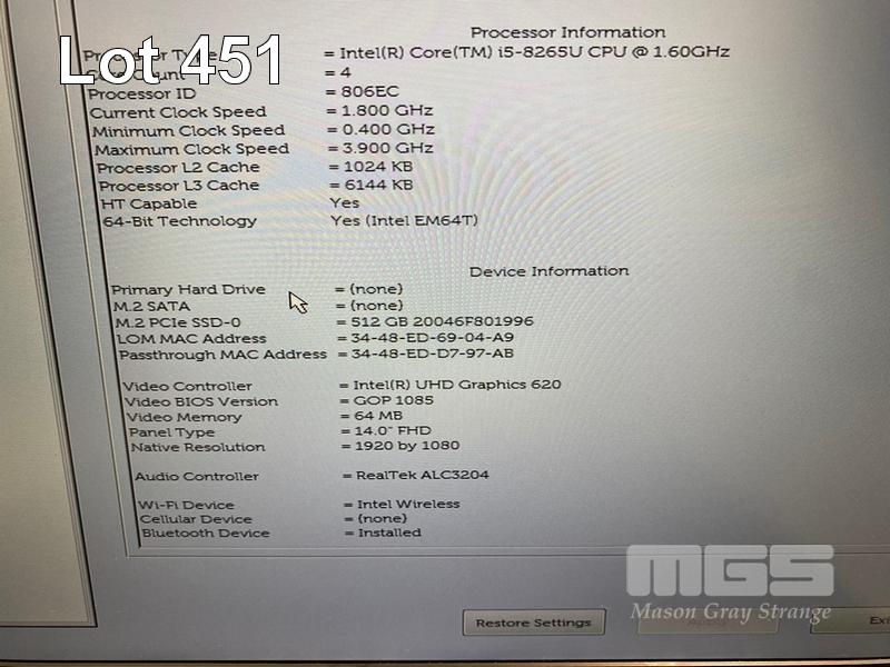 LAPTOP, DELL LATITUDE 5400, CORE i5 8265U (8TH GEN) @ 1.6GHz, 8GB DDR4 RAM, 512GB NVMe M.2 SSD, 14" WIDESCREEN (1920x1080), INTEL UHD GRAPHICS 620, Wi-Fi, BLUETOOTH, WINDOWS 11 HOME INSTALLED & POWER SUPPLY S/N:CHG1733