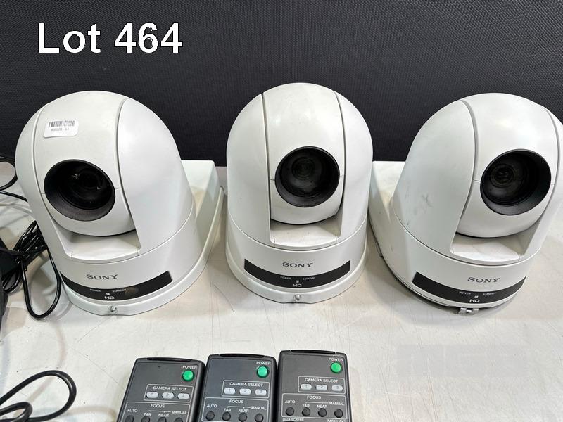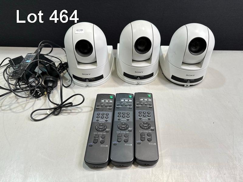 3 x SONY SRG-300H HD PTZ CAMERAS WITH REMOTES & POWER SUPPLIES