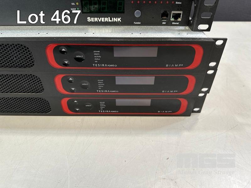 3 x BIAMP SYSTEMS TESIRA FORTE CI DIGITAL AUDIO PROCESSORS 3 x SERVERLINK PDU INTELLIGENT POWER DISTRIBUTION UNITS, SLP-SPP1008-H (NO CABLES)