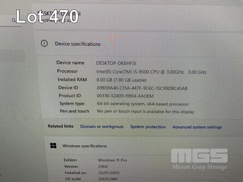ALL-IN-ONE PC, DELL OPTIPLEX 7470, CORE i5 9500 (9TH GEN) @ 3GHz, 8GB DDR4 RAM, 256GB NVMe M.2 SSD, INBUILT 23.8" FHD WIDESCREEN (1920x1080), INTEL HD GRAPHICS, WEBCAM, 5 x USB, 1 x USB-C, WINDOWS 11 PRO INSTALLED, KEYBOARD & MOUSE S/N:5TF7Q03