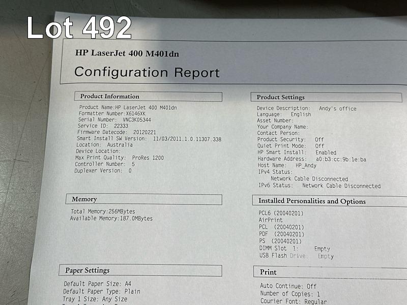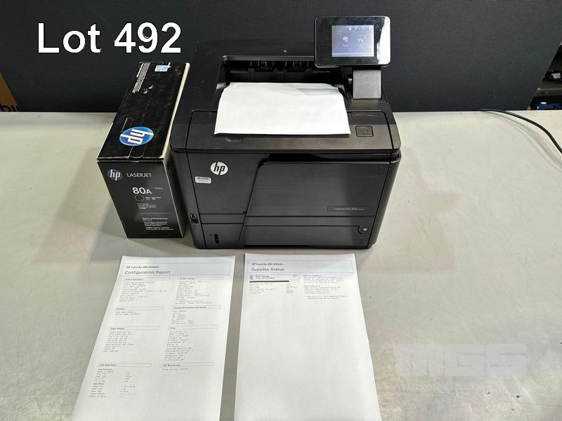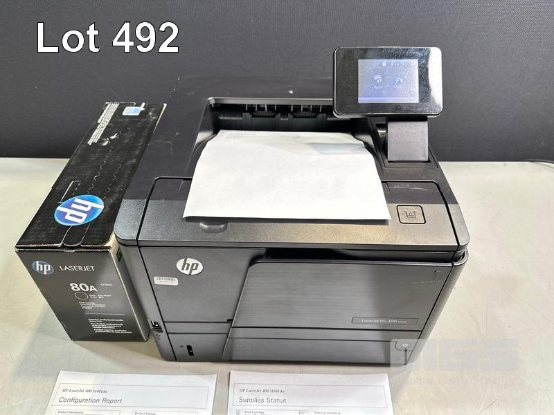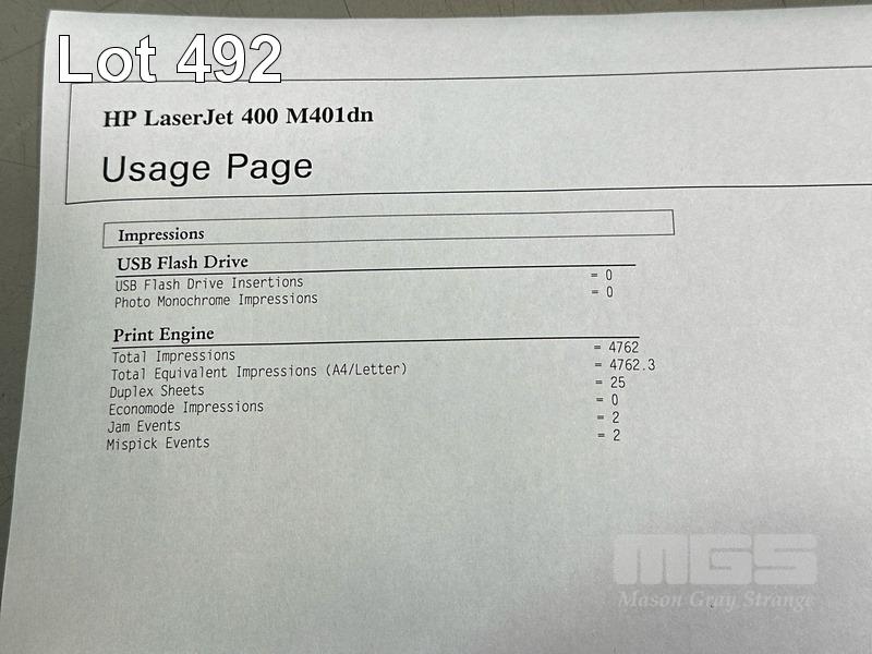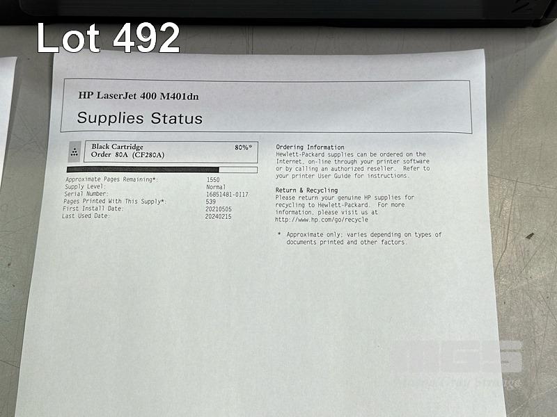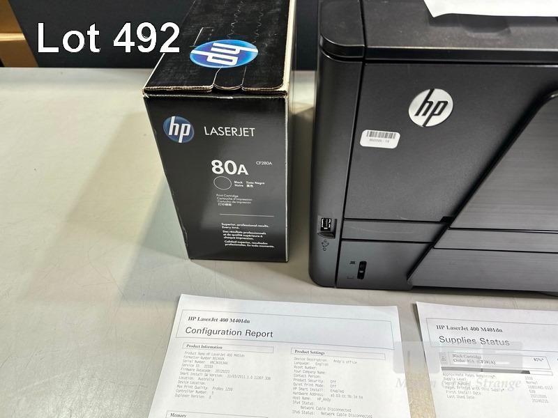 PRINTER, HP LASERJET PRO 400 M401dn LASER, USB, NETWORK, SPARE TONER CARTRIDGE, 4,762 PAGES (TEST PAGE ATTACHED)
