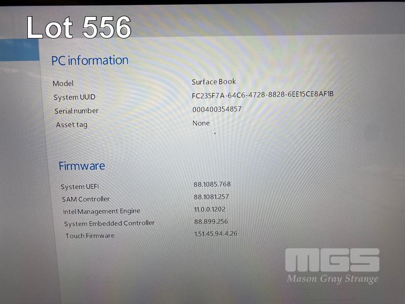 LAPTOP, MICROSOFT SURFACE BOOK, MODEL 1703, CORE i7 6600U (6TH GEN) @ 2.6GHz, 16GB DDR3 RAM, 512GB M.2 SSD, 13.5" TOUCHSCREEN (3000x2000), Wi-Fi, BLUETOOTH, WINDOWS 10 PRO INSTALLED & POWER SUPPLY (NOTE: SWOLLEN BATTERY) S/N:000400354857