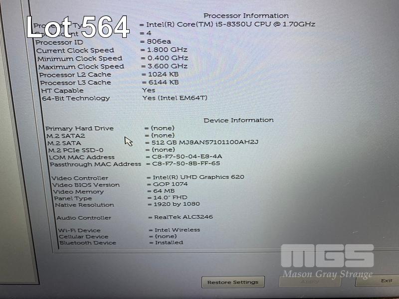 LAPTOP, DELL LATITUDE 5490, CORE i5 8350U (8TH GEN) @ 1.7GHz, 8GB DDR4 RAM, 512GB M.2 SSD, 14" WIDESCREEN (1920x1080), INTEL UHD GRAPHICS 620, Wi-Fi, BLUETOOTH, WINDOWS 11 HOME INSTALLED & POWER SUPPLY S/N:9R3G7S2