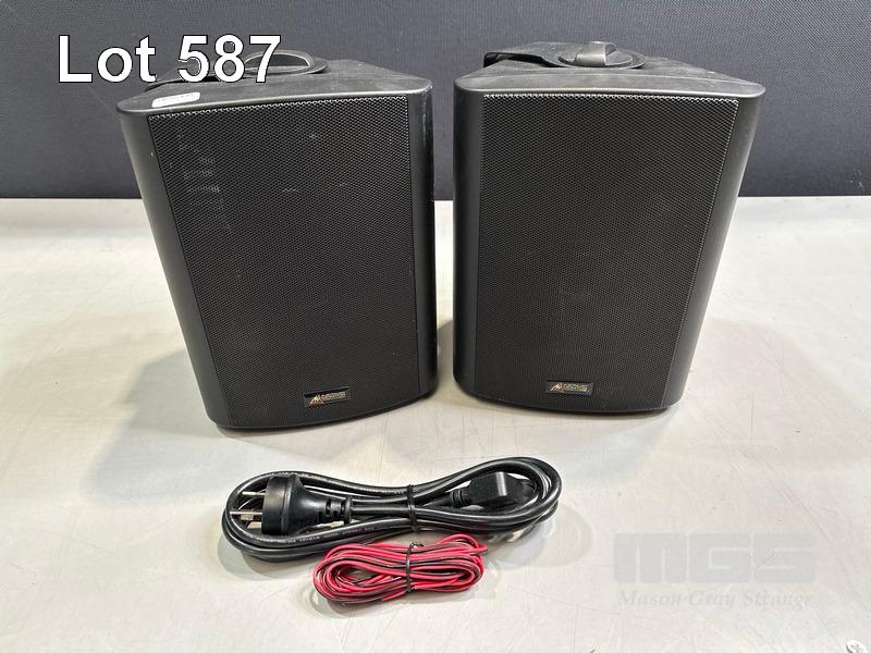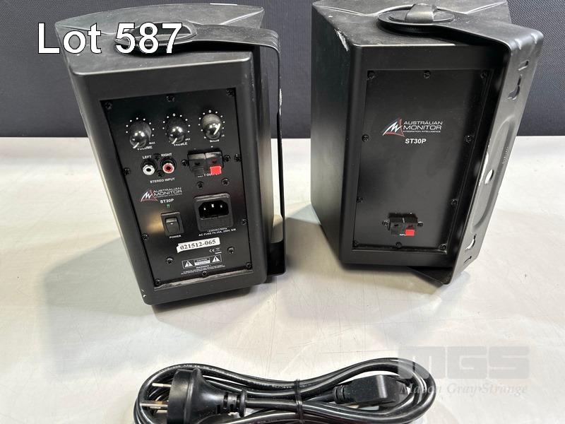 PAIR AUSTRALIAN MONITOR ST30P SPEAKERS, BLACK WITH CABLES