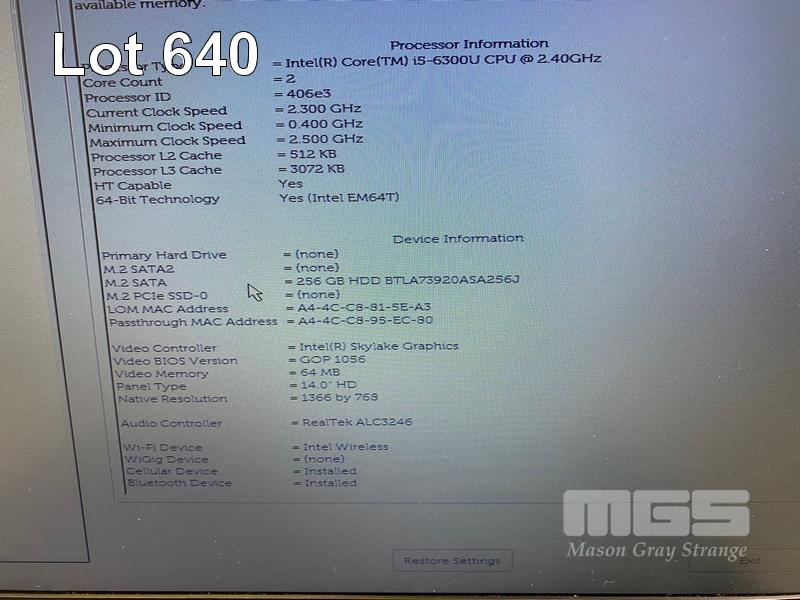 LAPTOP, DELL LATITUDE 5480, CORE i5 6300U (6TH GEN) @ 2.4GHz, 8GB DDR4 RAM, 256GB M.2 SSD, 14" WIDESCREEN (1366x768), INTEL HD GRAPHICS 520, Wi-Fi, CELLULAR, BLUETOOTH, WINDOWS 10 PRO INSTALLED & POWER SUPPLY (NOTE: MINOR MARKS ON SCREEN) S/N:FL6V3M2