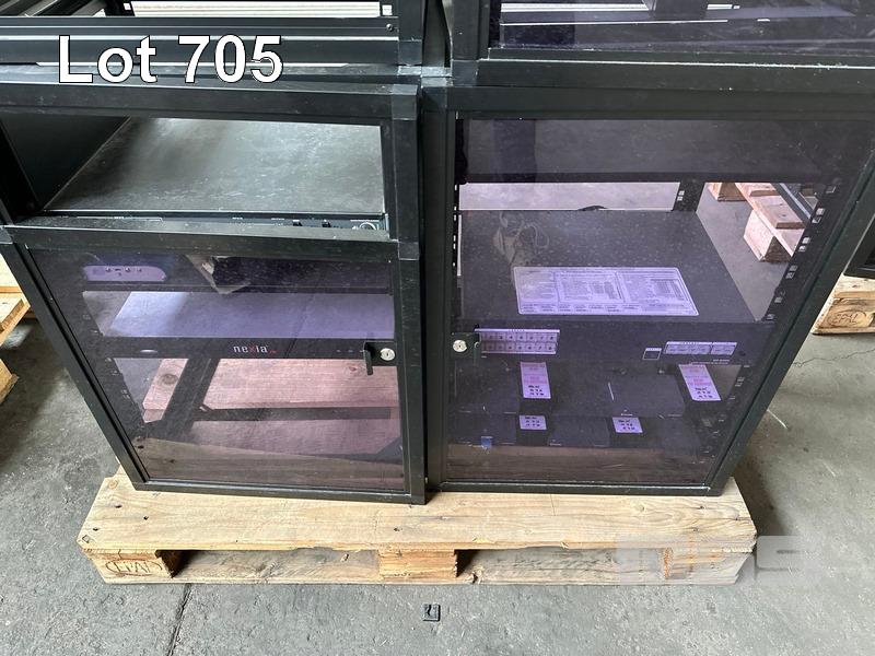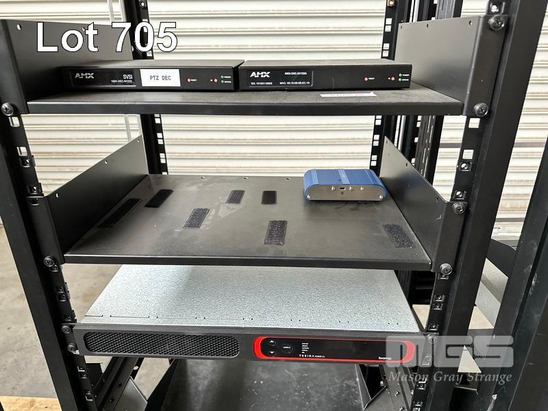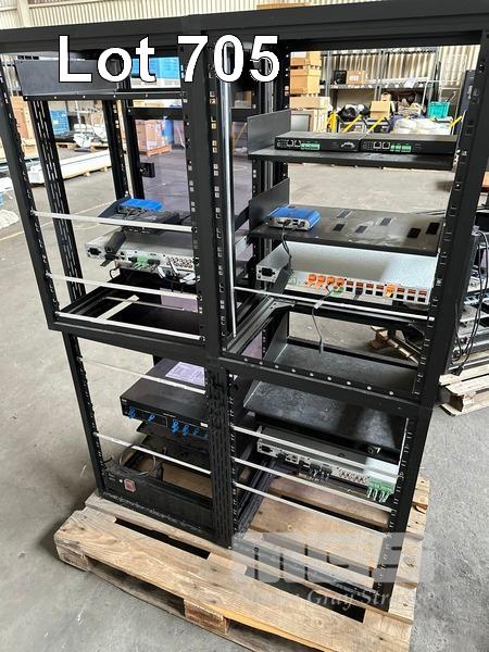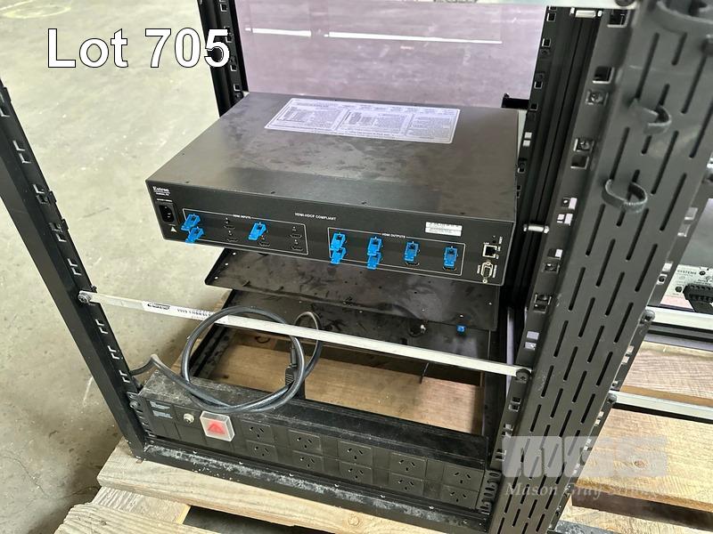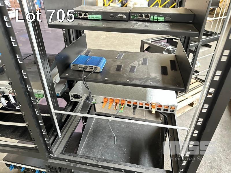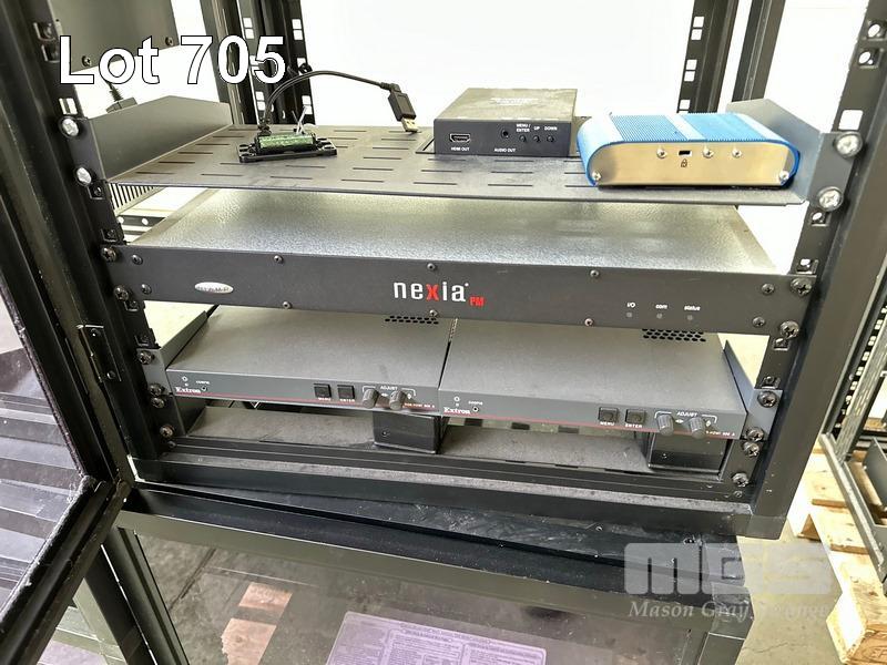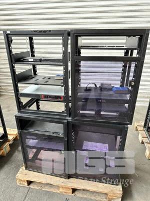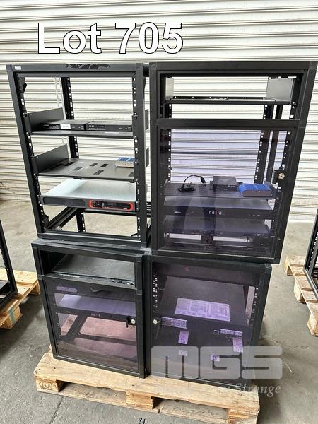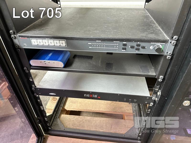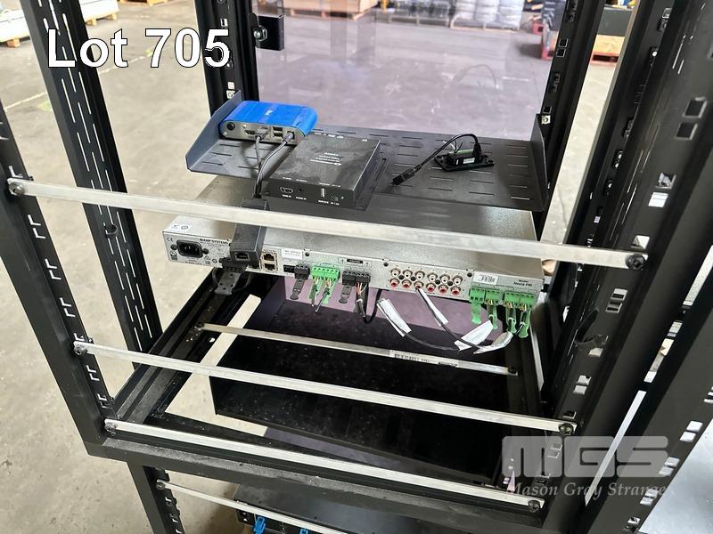 4 x DATA RACK FRAMES, 15RU & CONTENTS ASST AV EQUIPMENT INCLUDING NEXIA, EXTRON, BIAMP TESIRA FORTE CI, POWER BOARD (NO KEYS)
