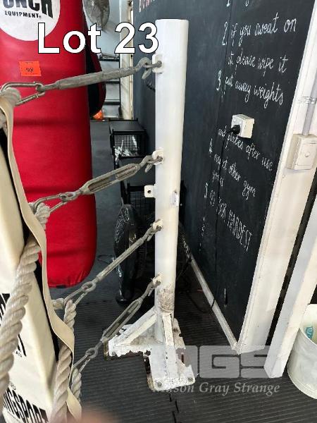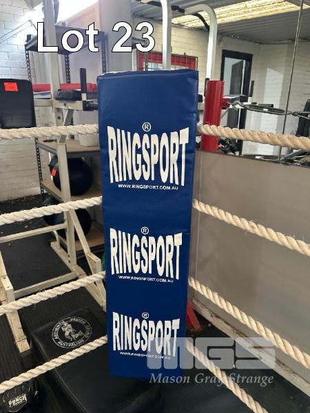 BOXING RING COMPRISING, 4 x CORNER POSTS, 4 x CORNER PADS, 4 x ROPES (60m TOTAL), 16 x TURNBUCKLES, 3.5 x 3.5m