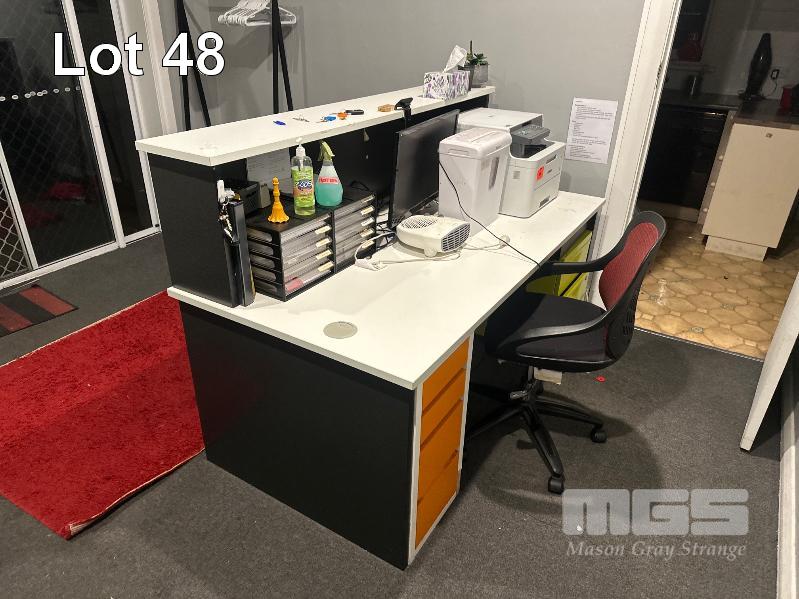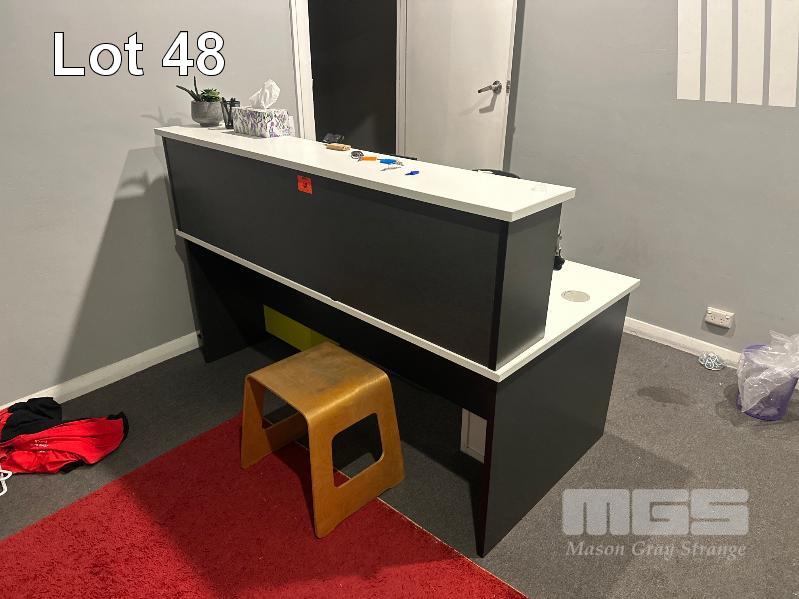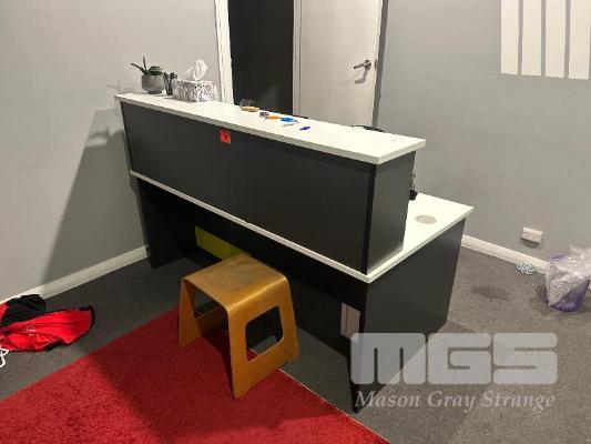 RECEPTION COUNTER, TIMBER LAMINATE, 1800 x 900mm WITH GAS LIFT CHAIR