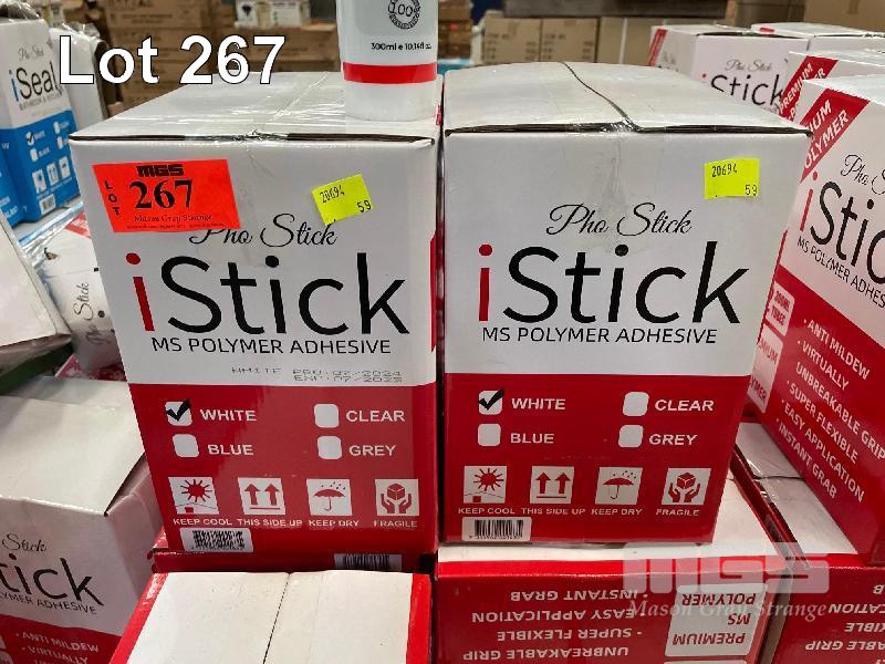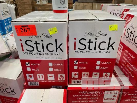 BUILDERS ADHESIVE, PHO STICK I-STICK, MS POLYMER ADHESIVE, ANTI MILDEW, FLEXIBLE, 4 x BOXES (12 x 300ml TUBES/BOX)