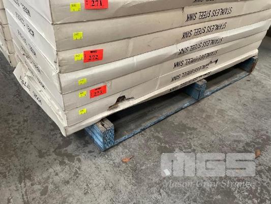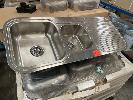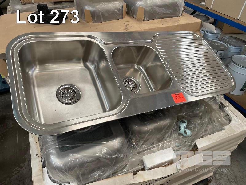 2 x STAINLESS STEEL, TWIN BOWL SINKS, 1180 x 480mm WITH FITTINGS AS NEW