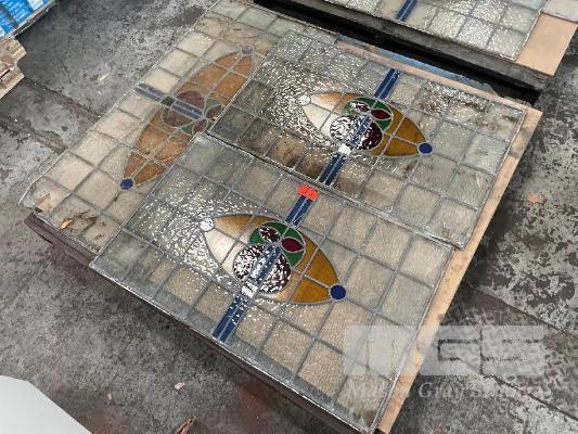 6 x ANTIQUE LEAD LIGHT WINDOWS, NO FRAME (VARIOUS CONDITION) 5 @ 850 x 520mm 1 @ 1100 x 520mm