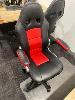 DESK, PINE LAMINATE TOP, BLACK STEEL FRAME, 1500 x 750mm + GAS LIFT CHAIR, RED & BLACK VINYL, 3 DRAWER UNDER DESK MOBILE