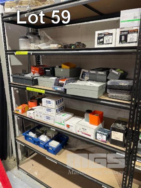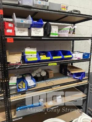 CONTENTS 2 BAYS SHELVES, ELECTRICAL COMPONENTS, SADDLES, THREADED ROD, ASSORTED HARDWARE, CB'S ETC.