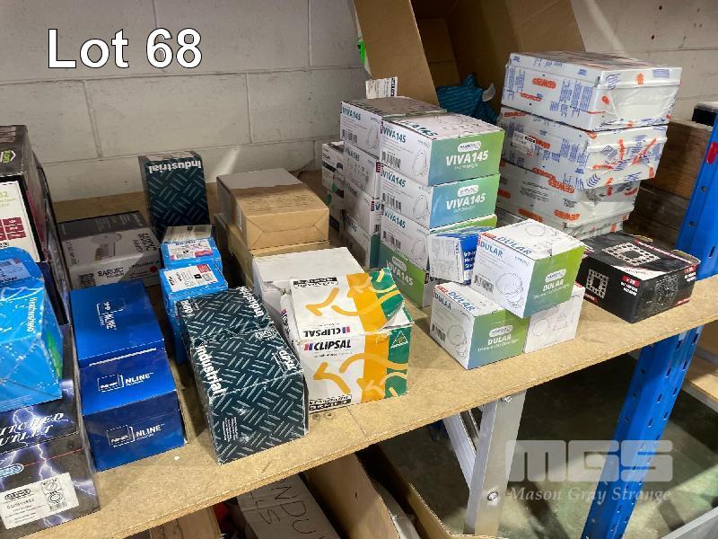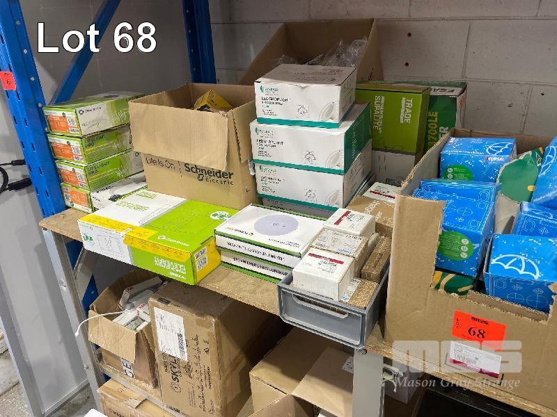 ASSORTED ELECTRICAL COMPONENTS, LIGHTS, LED ENCLOSURES, SWITCHES, WEATHER PROOF EMERGENCY LIGHTS, LED PANELS LIGHTS ETC.