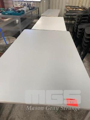 3 x LAYOUT TABLES, LAMINATE TOPS, STEEL FRAME,