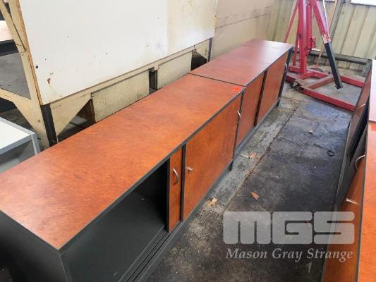 2 x CREDENZAS, 1500 x 450 x 700mm, WALNUT & GREY LAMINATE FINISH, SLIDING DOORS