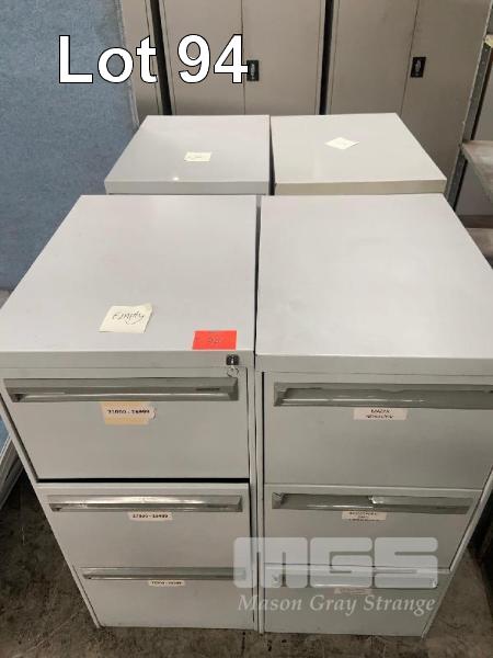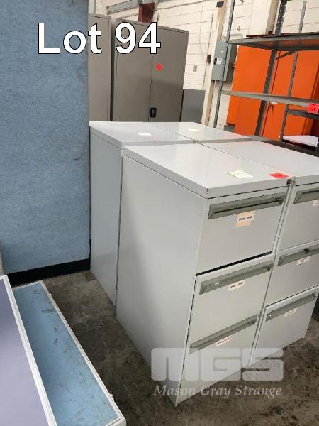 4 x STEEL FILING CABINETS, 3 DRAWER, GREY