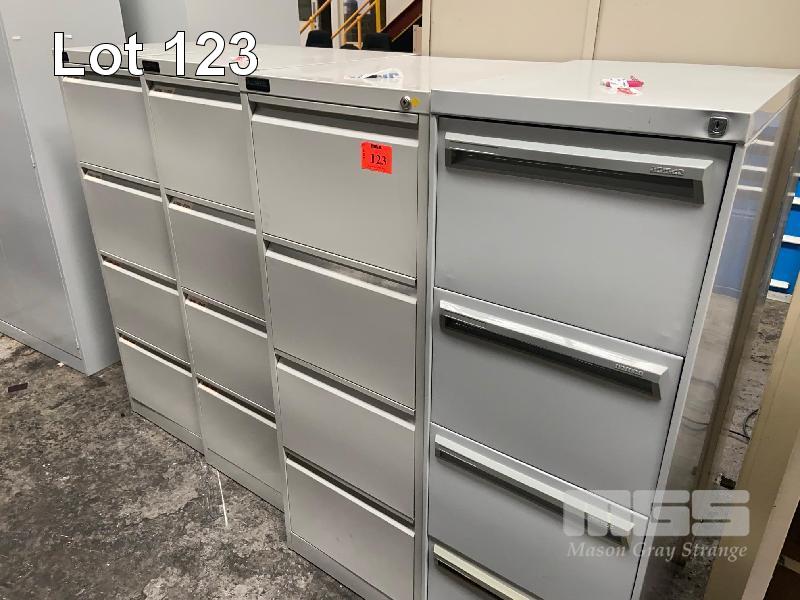 4 x STEEL FILING CABINETS, 4 DRAWER, GREY WITH KEYS