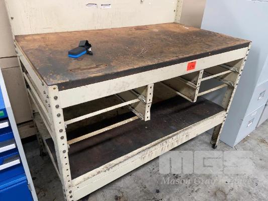 STEEL FRAME BENCH, 1420 (L) x 790 (D) x 1030mm (H), PARTICLE BOARD TOP, LOWER SHELF