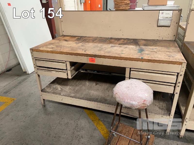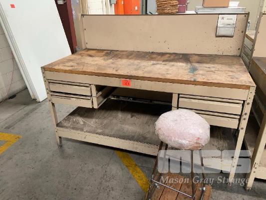 STEEL BENCH, 1710 (W) x 790 (D) x 900mm (H), PARTICLE BOARD TOP, 4 DRAWER, LOWER SHELF