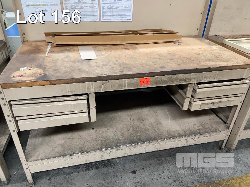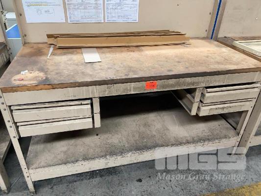 STEEL BENCH, 1710 (W) x 790 (D) x 900mm (H), PARTICLE BOARD TOP, 4 DRAWER, LOWER SHELF