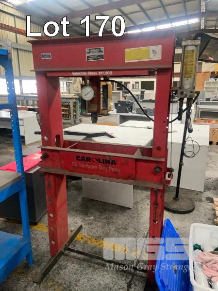 CAROLINA 55 TON HYDRALIC SHOP PRESS. RISE & FALL TABLE , HAND PUMP.