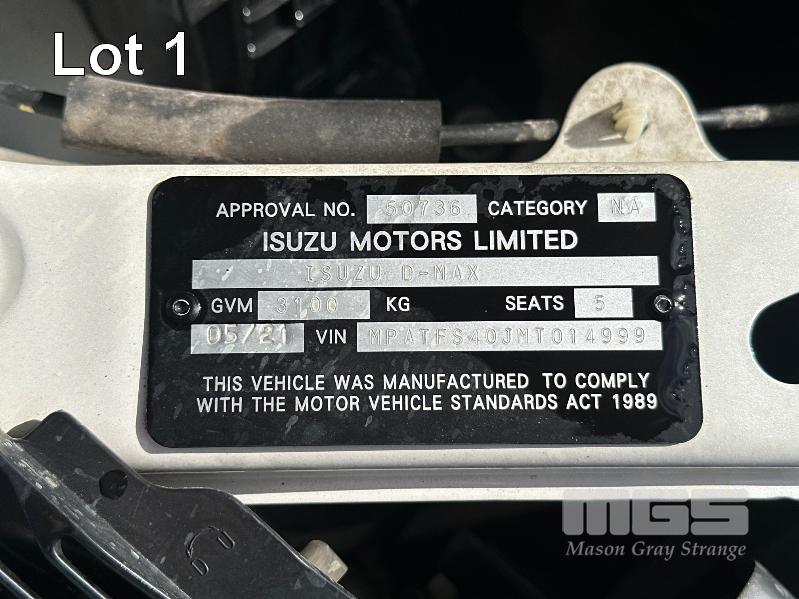 2021 ISUZU D-MAX X-TERRAIN RG MY21 DUAL CAB UTE 4X4 REG: XB038N (SA) VIN: MPATFS40JMT014999 ODO: 108,289 3.0L TCDI DT4 TURBO DIESEL, 6 SPEED AUTO SEQ SPORT, OFF WHITE, 4 DOORS, 5 SEAT, 4X4 ABS, AIR BAG, AIR CON, ALLOY WHEELS, BLUETOOTH, CENTRAL LOCKING, CRUISE CONTROL, LEATHER TRIM, POWER STEERING, POWER WINDOWS, SIDE STEP, TRACTION CONTROL, TOUCH SCREEN APPLE CAR PLAY, ROLL COVER, ROOF RACKS, REVERSE CAMERA & PARKING SENSORS KEY# 6 (WITH 2 KEY/S) CONDITION: TAIL GATE - SMALL DENTS & SCRATCHES