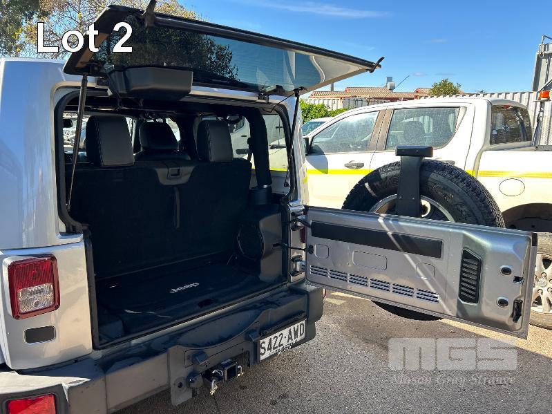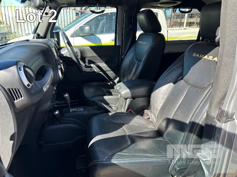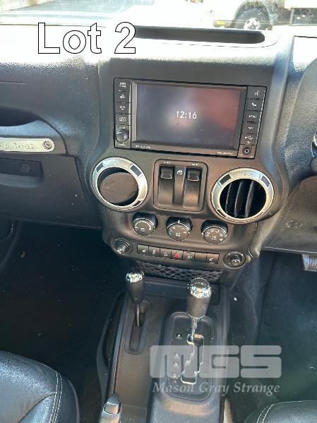 2012 JEEP WRANGLER OVERLAND JK SUV 4x4 REG: S422 AWD (SA) VIN: 1C4HJWHG7DL562437 ENG: DL562437 ODO: 119,085kms SHOWING 3.6 LITRE VVT PETROL, AUTOMATIC TRANSMISSION, SILVER DUCO, 2 DOORS, 4 SEAT, 4x4 ABS, AIR BAG, AIR CON, ALLOY WHEELS, BLUETOOTH, CENTRAL LOCKING, CRUISE CONTROL, IMMOBILISER, LEATHER TRIM, POWER STEERING, POWER WINDOWS, SIDE STEP, SPARE WHEEL, FULL ROLL CAGE WITH SOFT TOP & HARD TOP ROOFS REVERSE CAMERA & LCD KEY #20 (WITH PAPERS, WITH 2 KEY/S, WITH OWNER'S MANUAL, WITH SERVICE BOOKS)