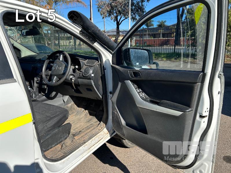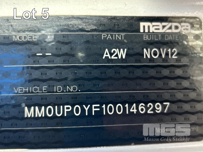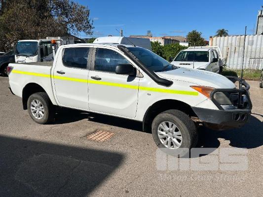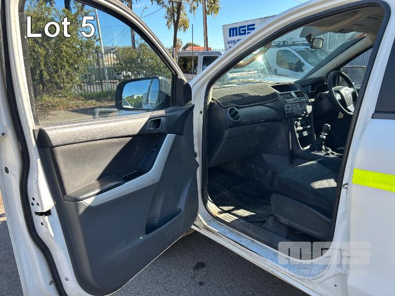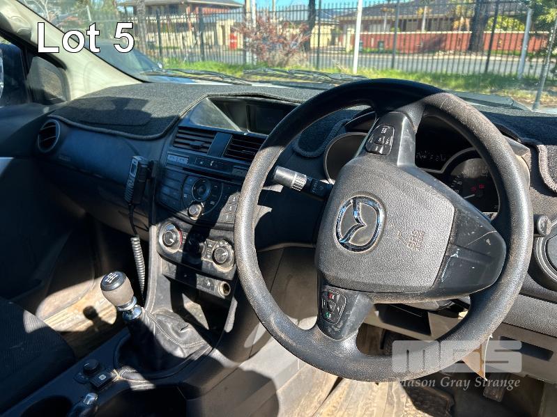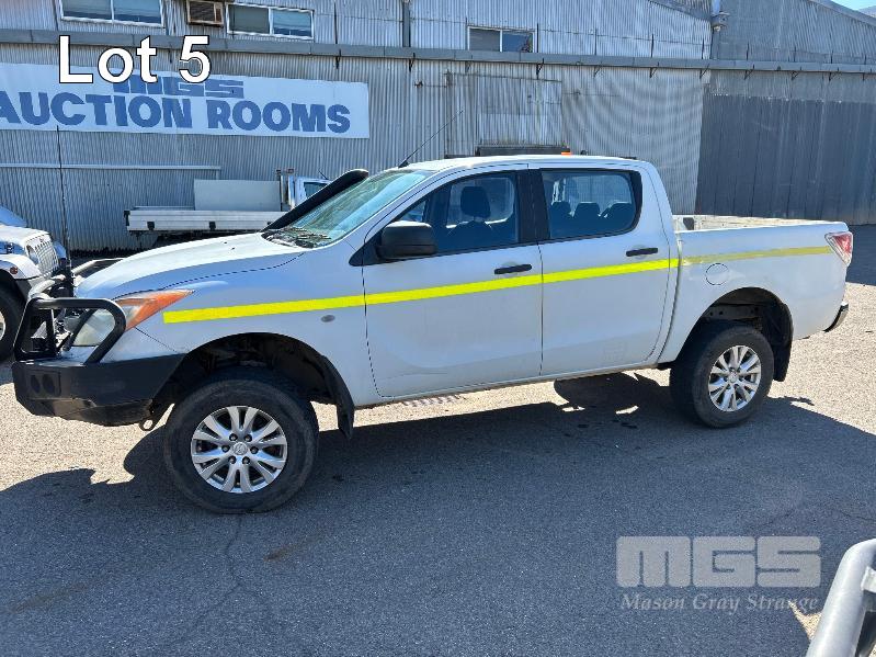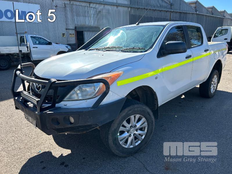 2012 MAZDA BT-50 DUAL CAB UTE 4x4 REG: S507 BWD (SA) (EXPIRED) VIN: MM0UP0YF100146297 ENG: P5AT1071834 ODO: 281,183kms SHOWING 5 CYLINDER TURBO DIESEL, 6 SPEED MANUAL TRANSMISSION, WHITE DUCO, 4 DOORS, 5 SEAT, 4x4 ABS, AIR BAG, AIR CON, ALLOY WHEELS, BLUETOOTH, BULL BAR, CD PLAYER, CENTRAL LOCKING, CRUISE CONTROL, DECALS, IMMOBILISER, POWER STEERING, POWER WINDOWS, SPARE WHEEL, TOW BAR, TRACTION CONTROL, SNORKEL AIR INTAKE 2 WAY RADIO KEY #18 (WITH PAPERS, WITH 1 KEY/S, WITH OWNER'S MANUAL)