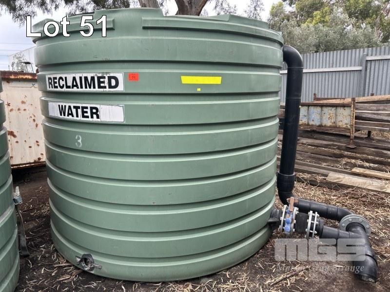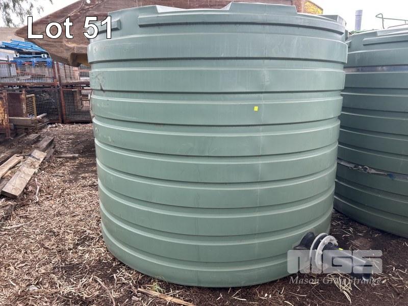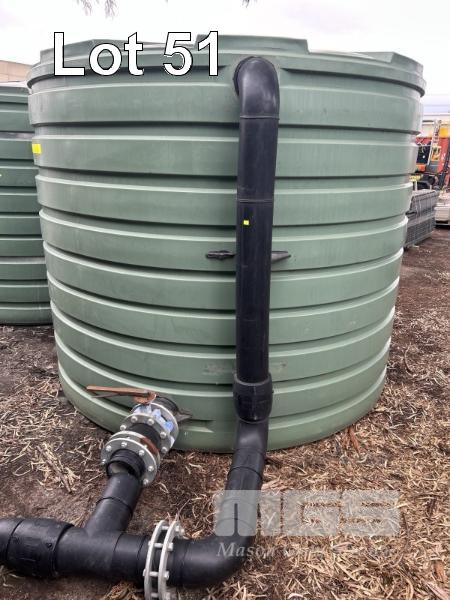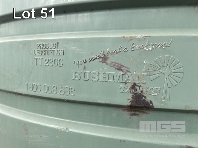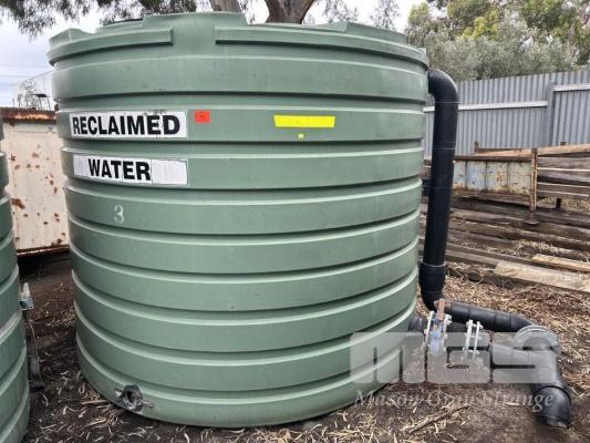 POLY WATER TANK, BUSHMAN TYPE: TT2300 ROUND, GREEN CAPACITY: 10,000 LITRE APPROX USED FOR RECLAIMED WATER, 2600mM DIAMETER x 2100mm (H) (HAS SOME MUD IN THE BOTTOM)