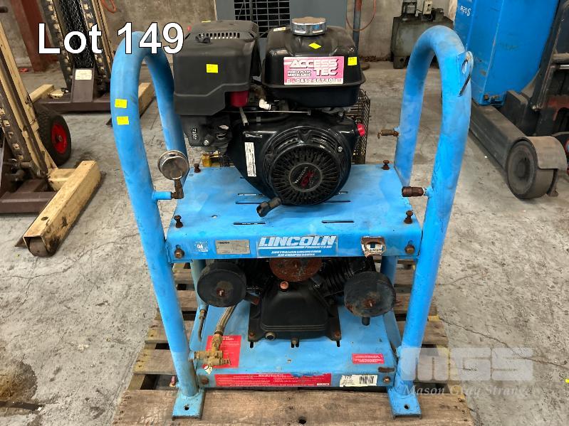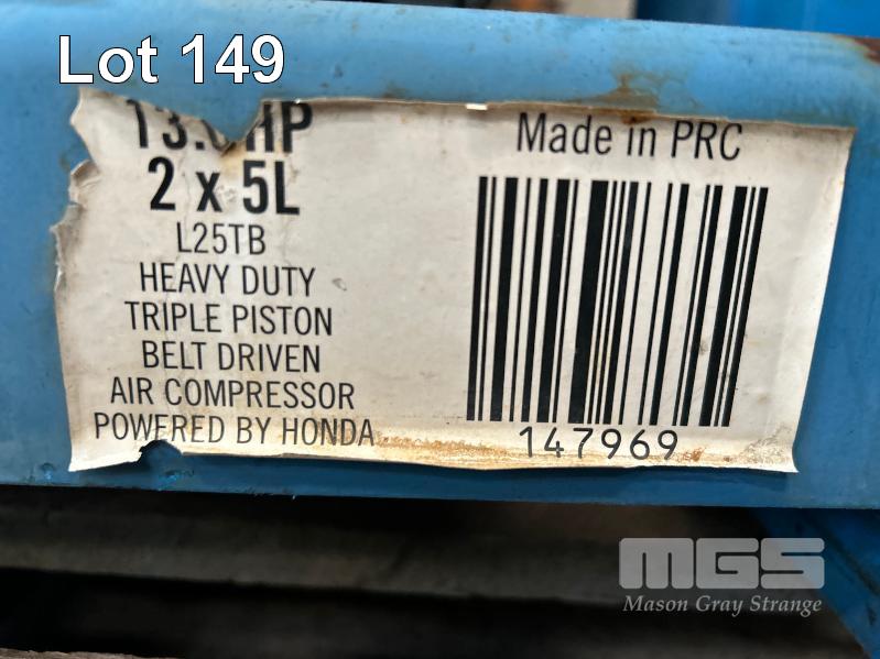 AIR COMPRESSOR, LINCOLN MOD: L25TB BELT DRIVEN POWERED BY HONDA GX390 PETROL MOTOR 130 HP, TANK SIZE: 2 x 5 LITRE